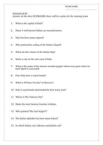 Italian Trivia Questions And Answers Printable / Read on for some hilarious trivia questions that will make your brain and your funny bone work overtime.